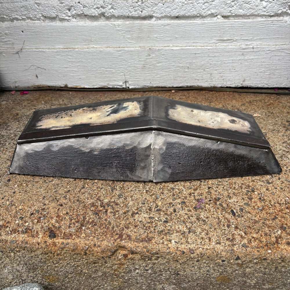 ‘A’ Frame Ledge ,, Steel Construction , smooth excellent feel to the Grind , Great Ledge for piecing tricks together. Patina weathered Aesthetic ,, Very Sturdy build and FB piece / Spot . Nice ledge variety for your Collection !