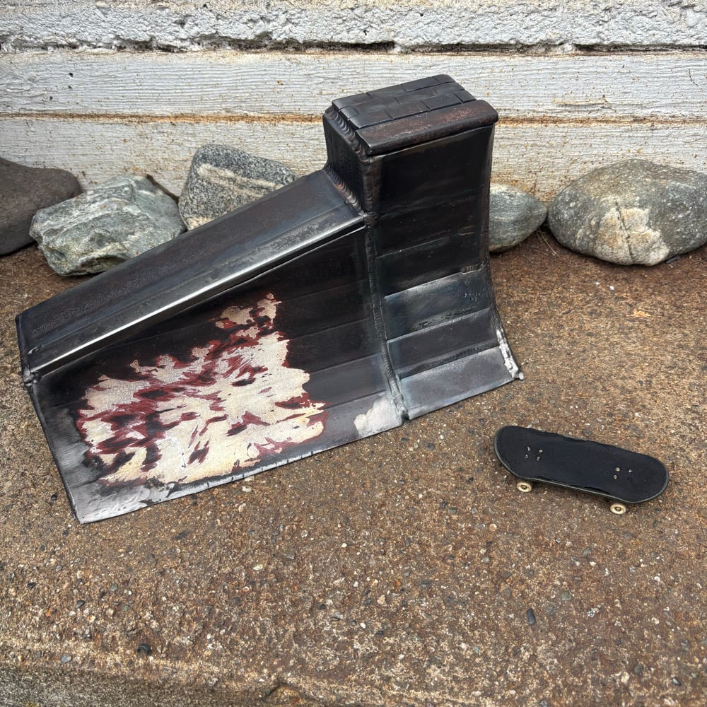 Heavy Steel Slanted Quarterpipe with Vert Extension , excellent textures for ripping up and Slashing grinds , functions as an amesome Hubba on the back side to be set off of drops too!