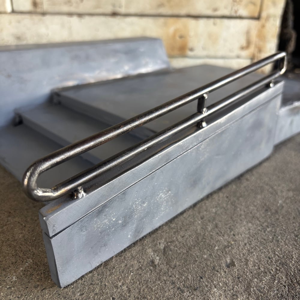 The Steep Bank , Wide three Stair and the Handicap Out Rail . Entirely Steel Welded ,Sturdy Piece . A heck of a time for Fingerboarding , Also a excellent Skateboarding Collectible. Piece Spans 2Ft at its Longest point and 11.25” Wide at its Widest point . One of a Kind Piece . $150 CAD .